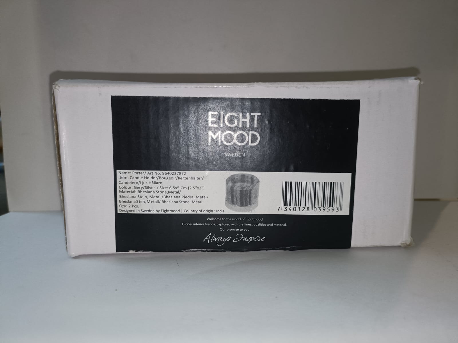 This is a luxurious marble candle holder set from Eightmood, Sweden, designed to bring elegance and ambient warmth to any space.